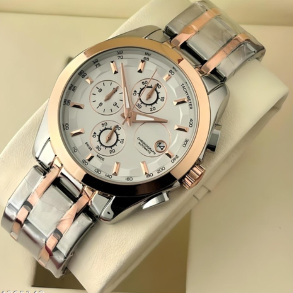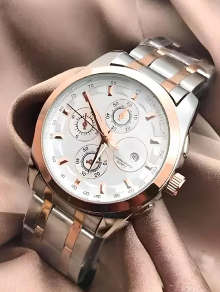 Silver and Gold steel strap with working chronograph new style for daily life Analog Watch - For Men Chronograph features loaded